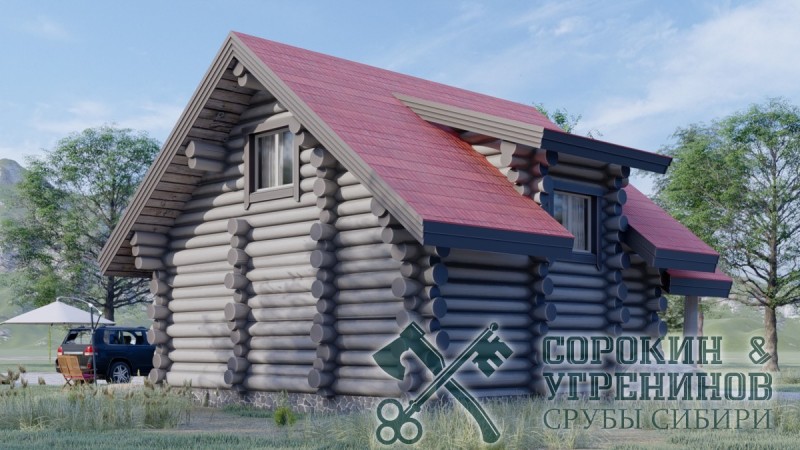 Проект дом-баня из бревна средним диаметром 260мм, размер сруба дома 7,8х9м, общая площадь дома 103м2, объём бревна в срубе 70м3. Дом-баня строился по индивидуальному проекту. Установка сруба производилась в Новосибирске в 2013 году в деревне Бугры.